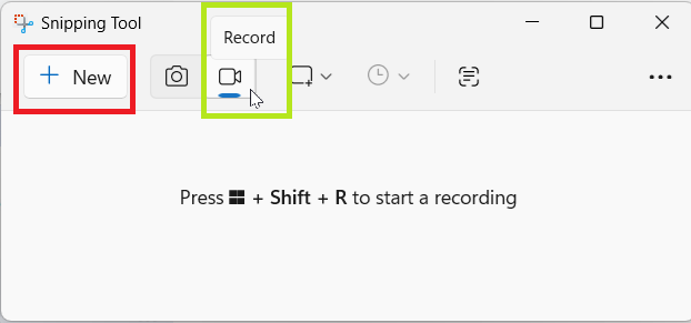 Step 1: Click on “New” to record the screen (Make sure you have selected “Record”).