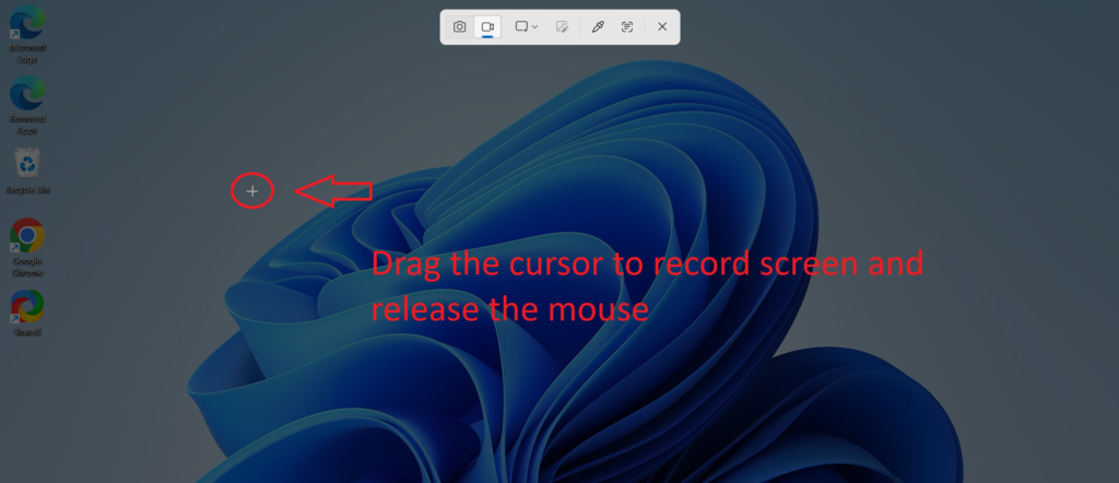 Step 2: Drag the cursor to select the recording area and then release the mouse.