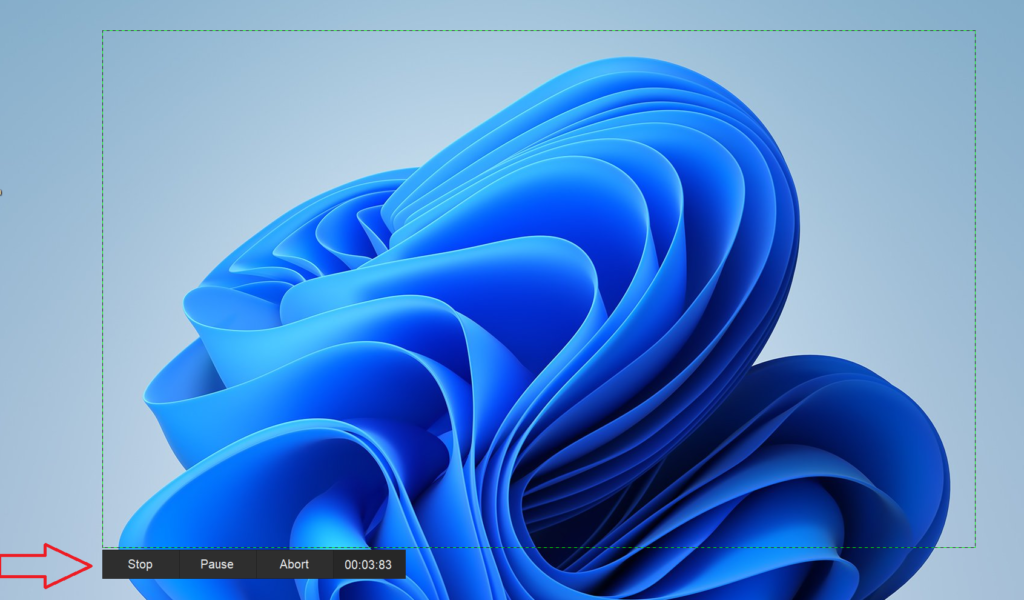 Step 3: Press “Stop” to complete the recording. You will see a pop-up on bottom right side of screen showing the path where recording is saved. You can click on it to see the recording.