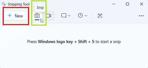 Step1: Click on “New” to take screenshot. (Make sure you have selected “Snip”)