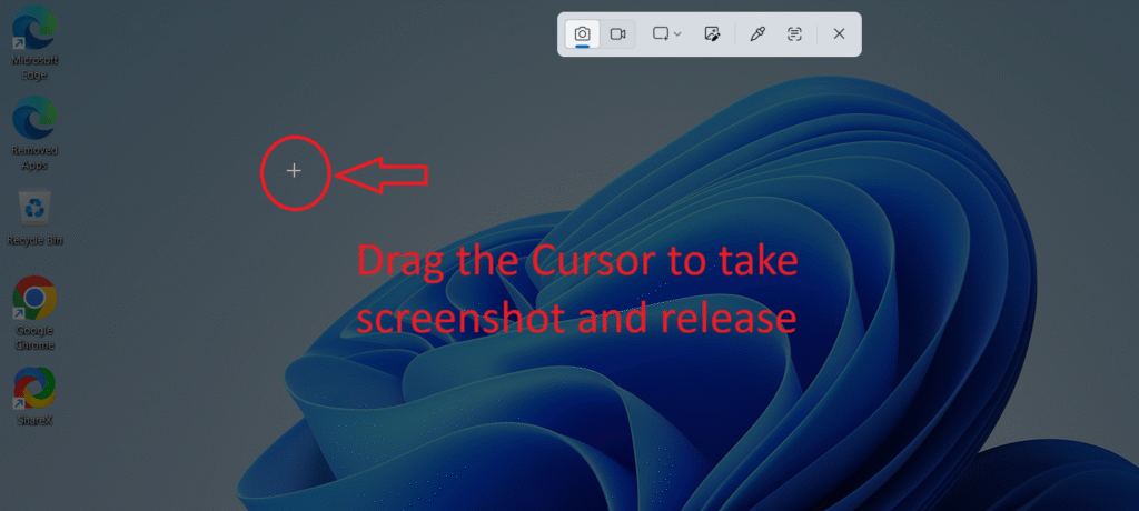Step2: Drag the cursor to select the screenshot area. Release the mouse to complete the screenshot.