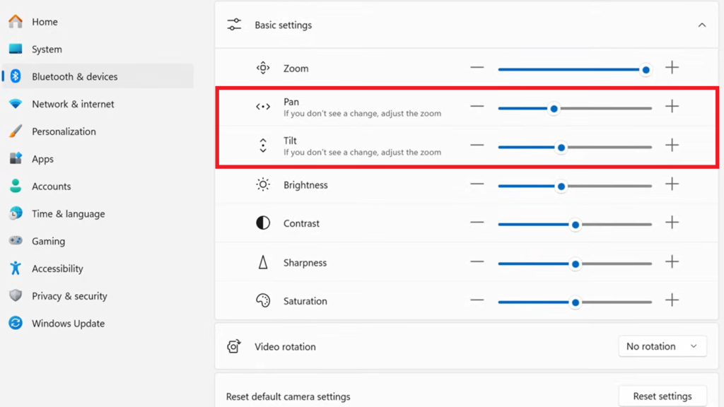 Windows have added two new options in camera’s “basic settings” namely, Pan and Tilt.